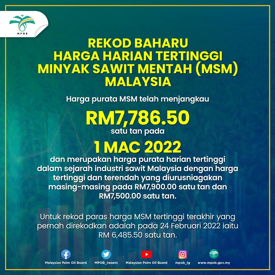 Kemaskini 9 Hb April 2021 Jam 5 Petang 1 Harga Minyak Sawit Mentah Msm Malaysia Pada 8 April 2021 Rm4235 00 Tan Metrik N