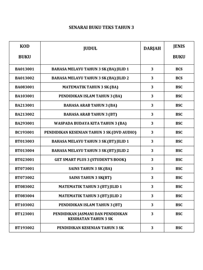 Senarai Buku Teks Tahun 1 6 Pdf